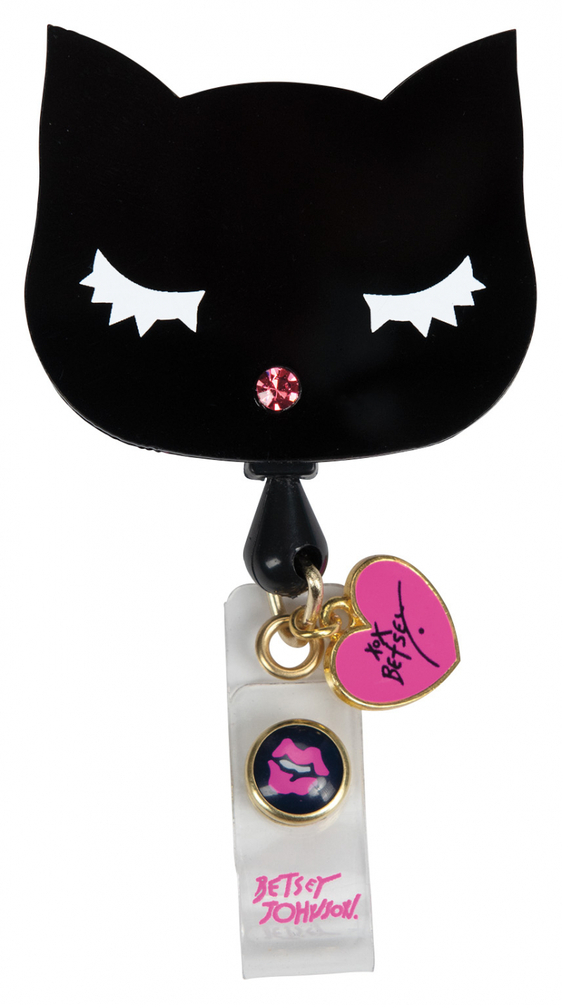Cat Retractable ID Badge Holder features a button-snap with Betsey Johnson logo.