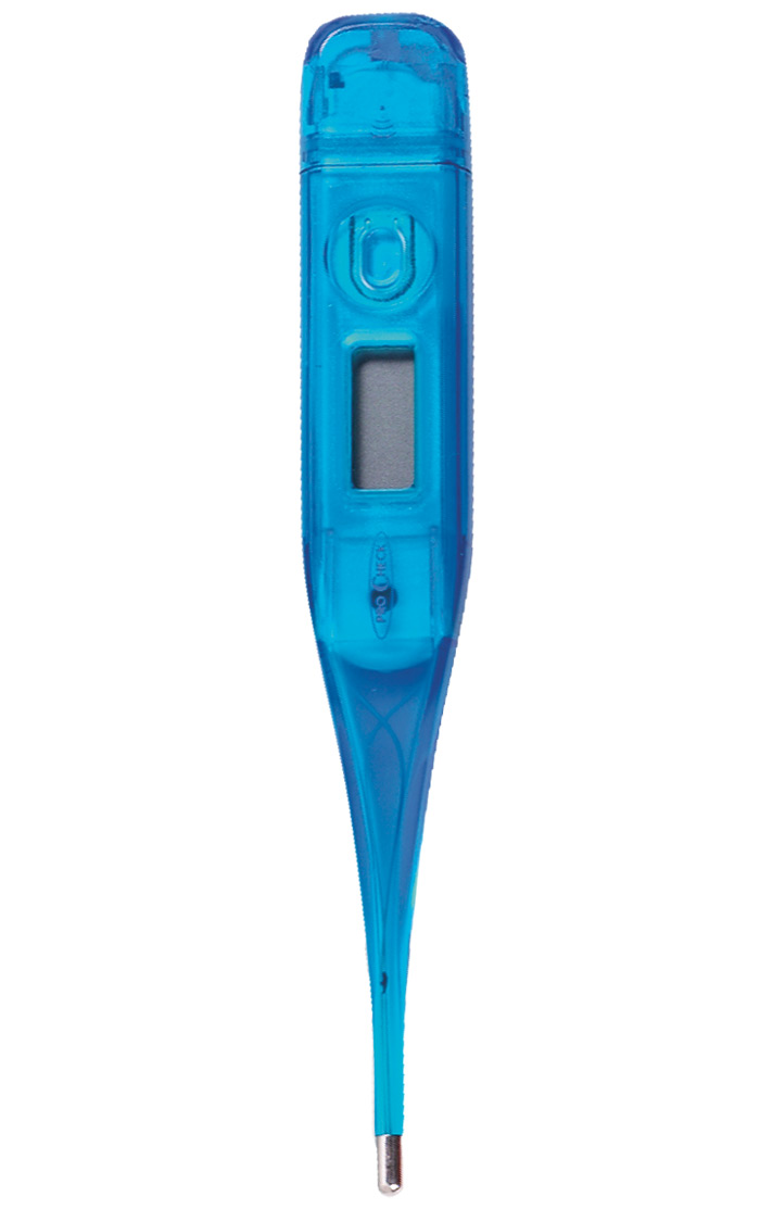 Measures in fahrenheit or Celsius. Features 60 second readings and recalls last reading taken. For use orally, rectally or under the arm. Includes: Five probe covers, LR41 button battery Warranty: One Year
