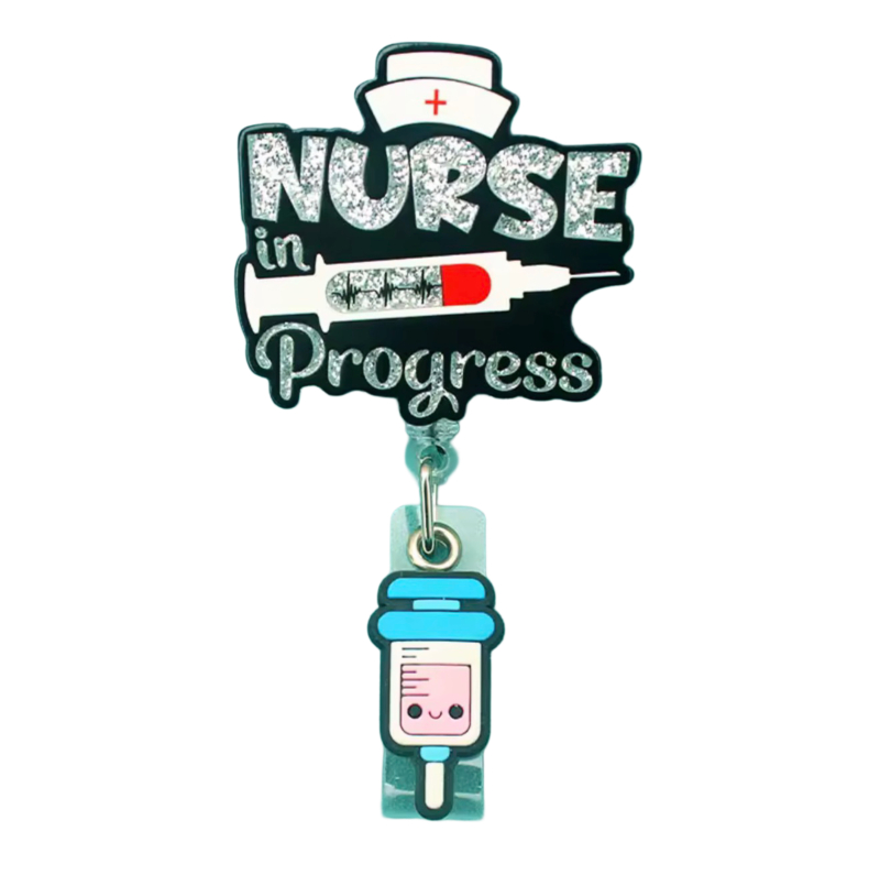 Porta ID con diseño “Nurse in Progress” y acabado brillante. Divertido, ligero y perfecto para acompañarte en cada etapa de tu camino en la salud.