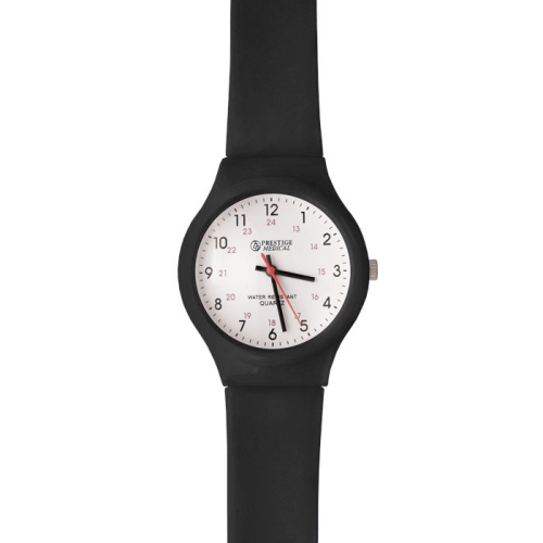 Specifically crafted for medical professionals, Prestige Medical time pieces are designed for a variety of workplace applications while enabling the personalization of healthcare. Quartz movement with a battery (SR626SW) included. Plastic band. Plastic case. Plastic lens.