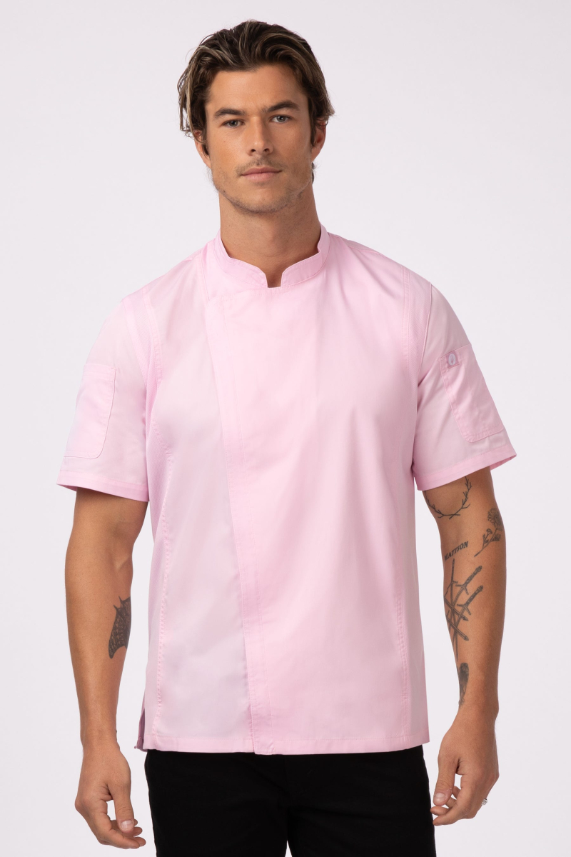 Soporte para delantal en la parte posterior del cuello con un botón a presión grabado