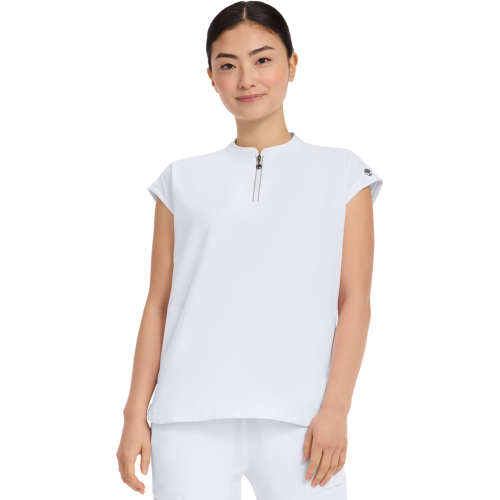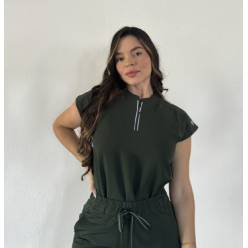Top boxy oversized y cómodo con cuello mandarín. Cuenta con escote con cuello y media cremallera, mangas tipo dolman, 2 bolsillos tipo ribete (welt), dobladillo redondeado y detalle de pliegue tipo box en el canesú trasero. El acabado en tejido knit en los hombros delanteros y en el canesú trasero añade un toque especial a la prenda.
