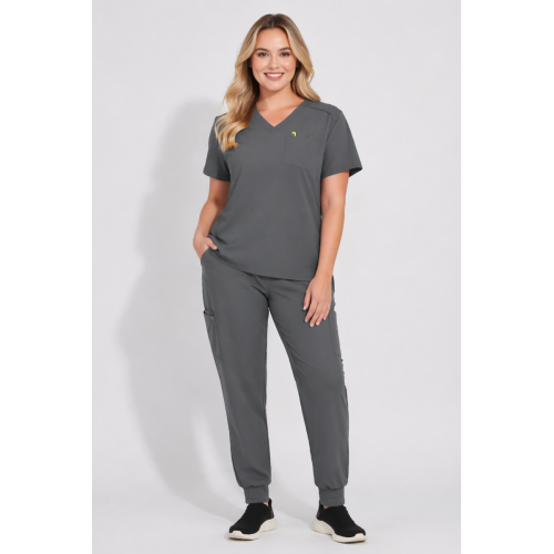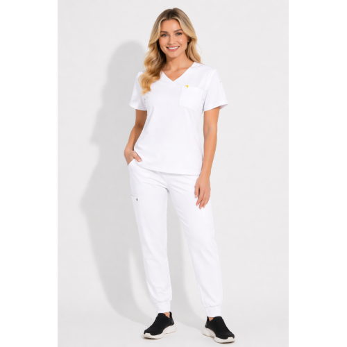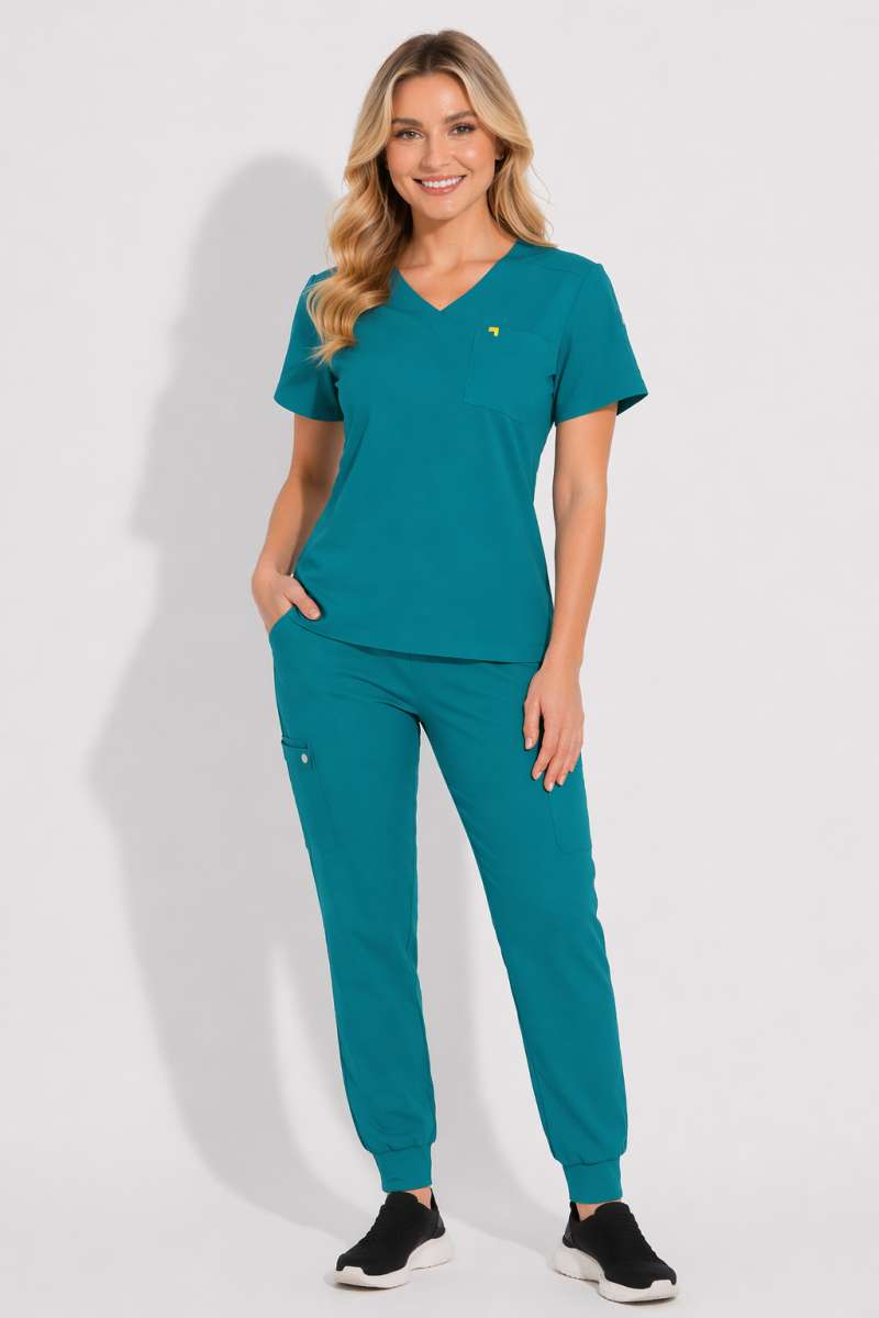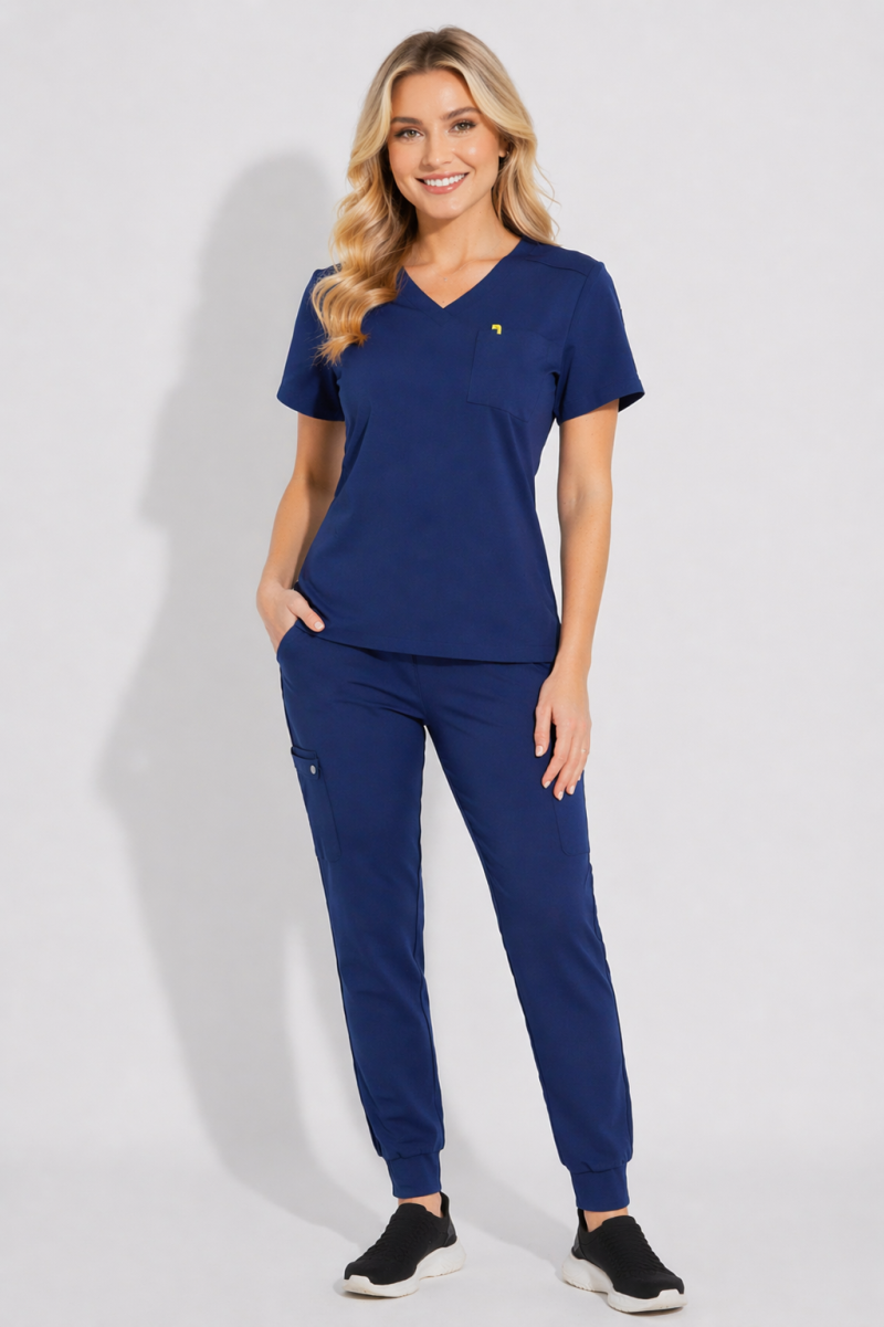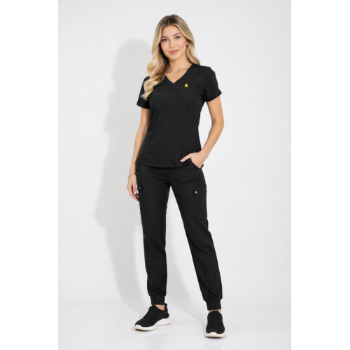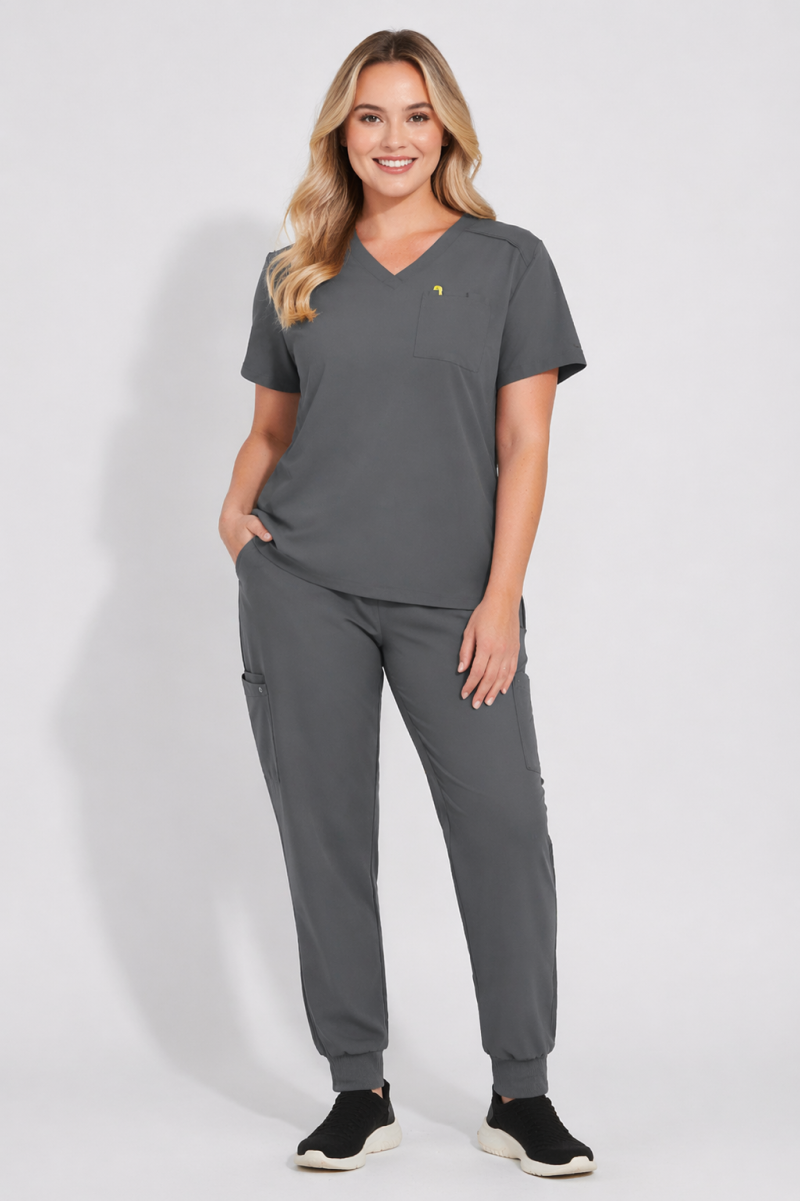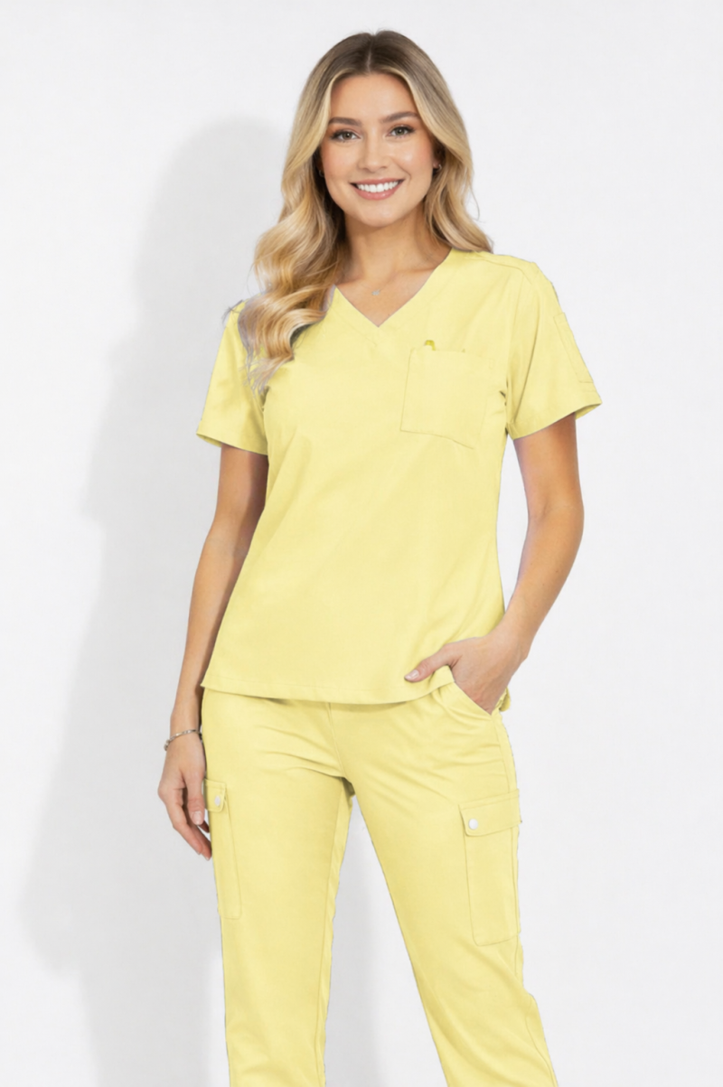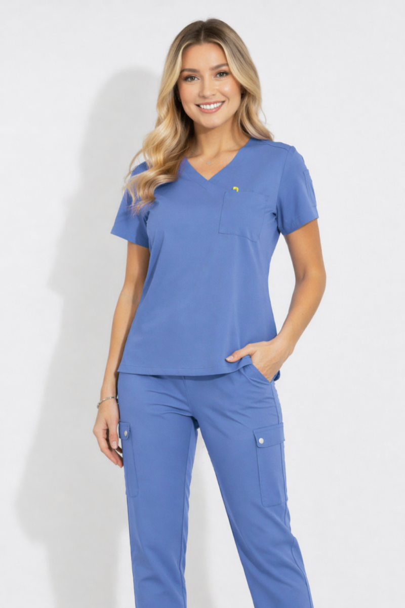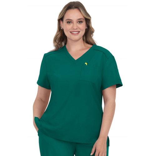La solución para el scrub común. Una blusa fresca y funcional que luce excelente tanto por dentro como por fuera del pantalón. Cuello clásico en V, bolsillo en el pecho, bolsillo en la manga,3 espacios para bolígrafos, Aberturas laterales para mayor comodidad y movimiento, largo (talla Small): 26 1/2 pulgadas