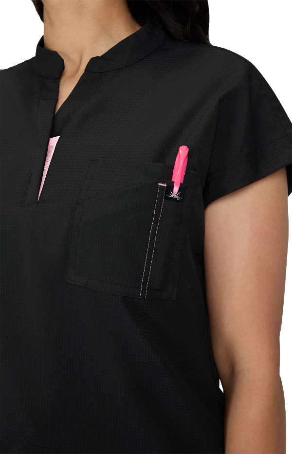 Catrin Top Blusa Scrub Moderna con Cierre – Suavidad y Resistencia. Diseñada para brindar comodidad, estilo y durabilidad, esta blusa scrub cuenta con tela ExoFlex™ ripstop elástica, resistente pero increíblemente suave al tacto. Su cuello con zipper le da un toque moderno, mientras que el bolsillo combinado en el pecho con espacio para bolígrafos mantiene todo lo que necesitas a la mano. Las aberturas laterales permiten mayor movilidad y puedes usarla por dentro o por fuera del pantalón para un look profesional y versátil. Características: Cuello con cierre (zipper) moderno Bolsillo doble en el pecho con espacio para bolígrafo Cordón para ID en contraste Tela ripstop elástica, suave y resistente Tela: 97% poliéster / 3% spandex Largo (talla Small): 25”