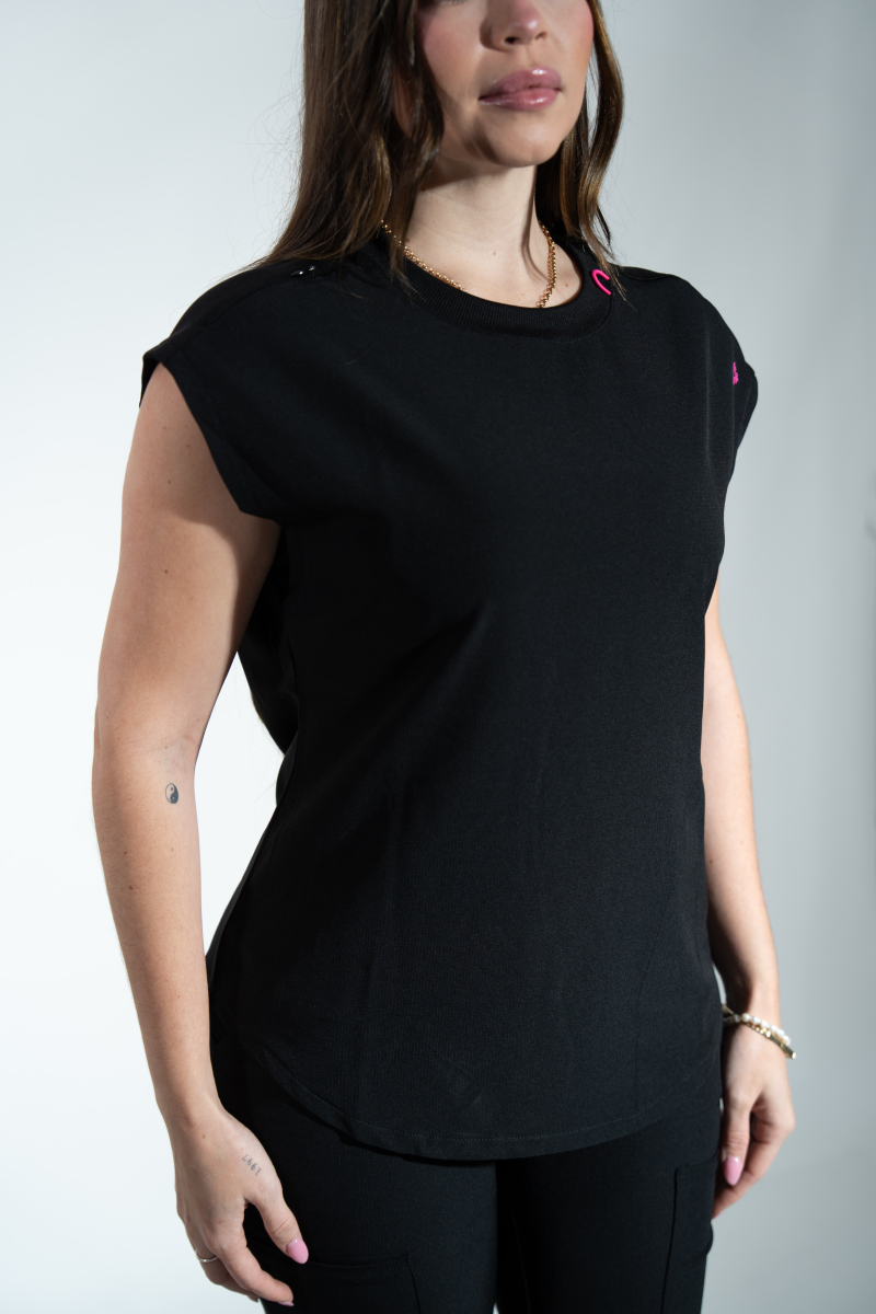 Largo: 25”Top médico estilo Missy Fit con cuello redondo y diseño moderno.