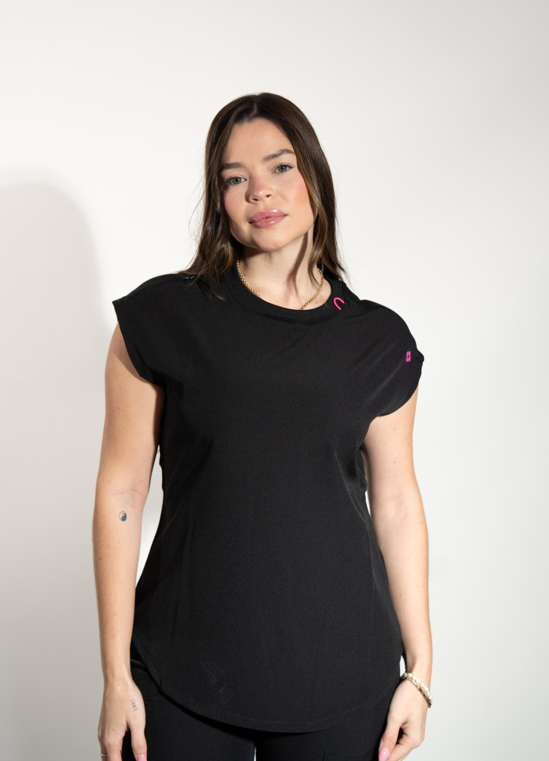 Incluye rib en el cuello y mangas tipo dolman para mayor comodidad. Cuenta con dos bolsillos con zipper (uno para earbuds y otro lateral), loop para ID, y detalle de rib en la espalda que mejora el ajuste.