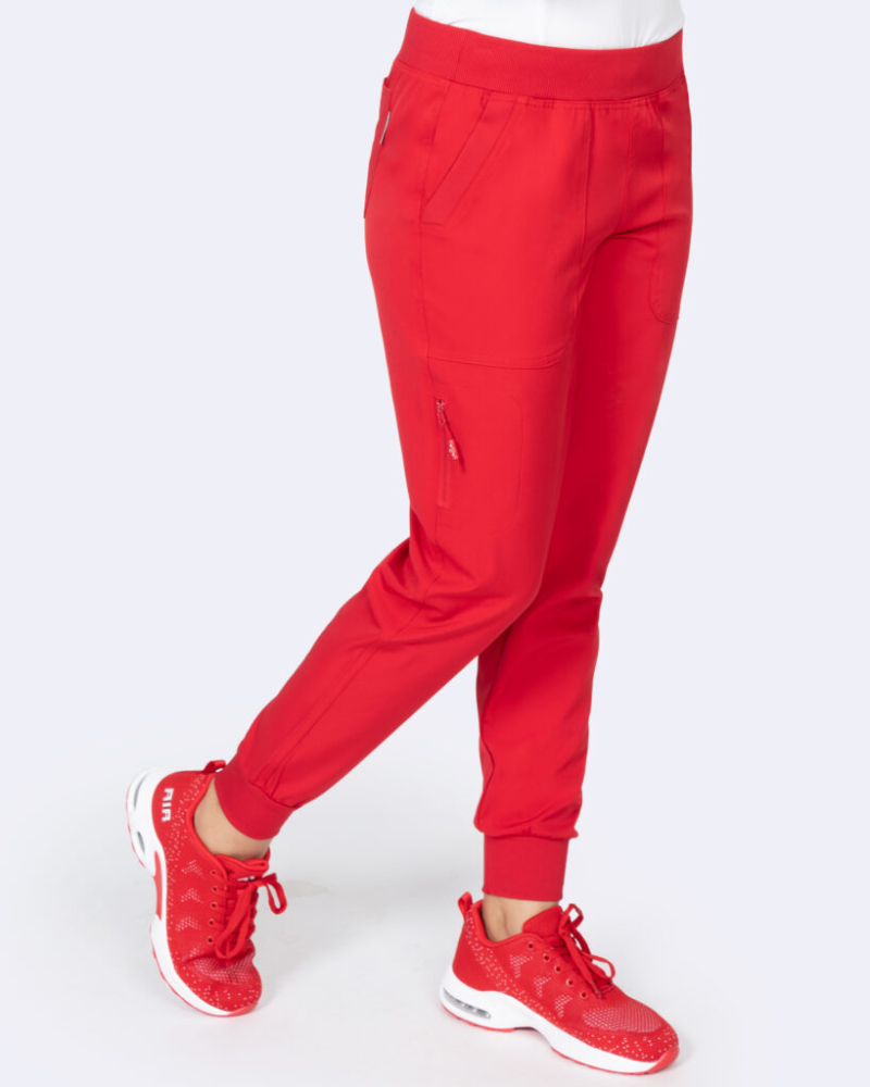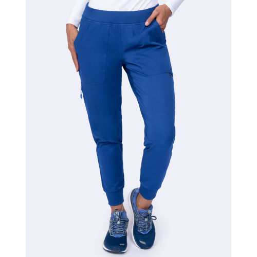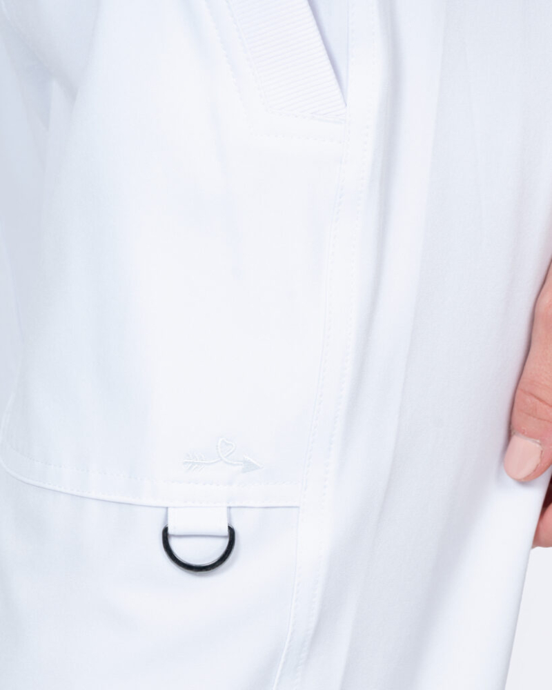 Elastic rib knit waistband with internal drawstring Two on-seam front curved patch pockets with rib knit detail at pocket entry Additional front side zipper pocket with removable logo zipper pull Two back curved patch pockets with “Ava Therese” reflective flasher on right pocket Heart arrow logo embroidery on wearer’s left patch pocket Self tab with utility gunmetal d-ring Tapered jogger pant leg with rib knit cuffs