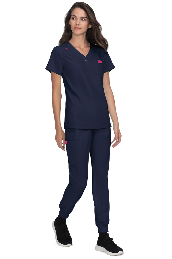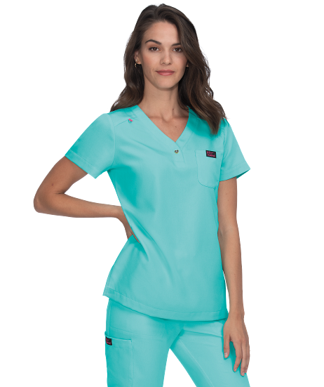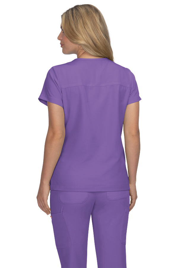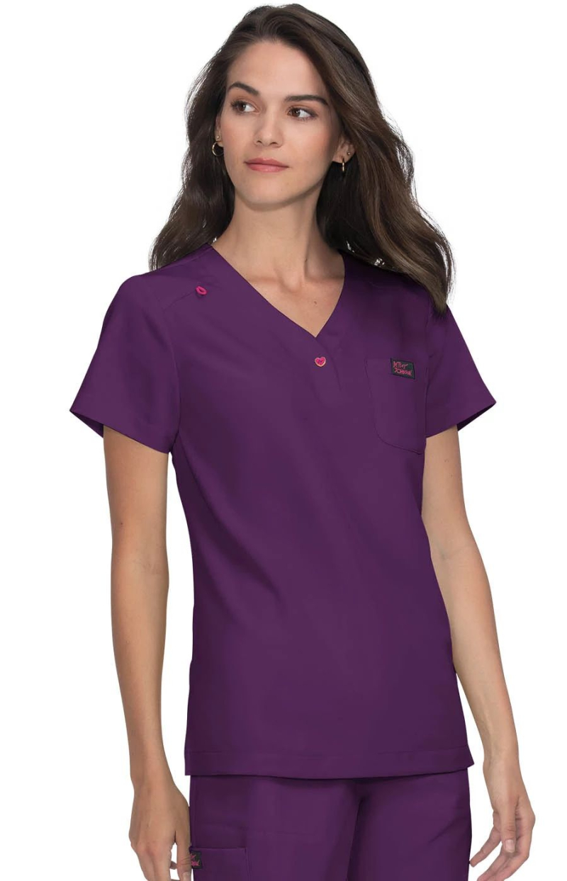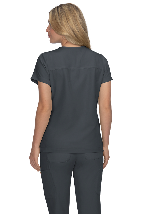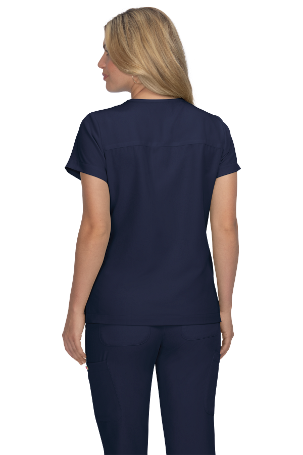 his super cute top features a heart-shaped snap at neck. Modern classic fit.