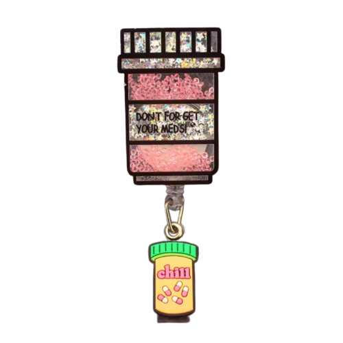 Porta ID con diseño brillante y mensaje divertido que te recuerda lo importante. Ligero, práctico y perfecto para tu rutina diaria. 💊 Stay cute, stay consistent.
