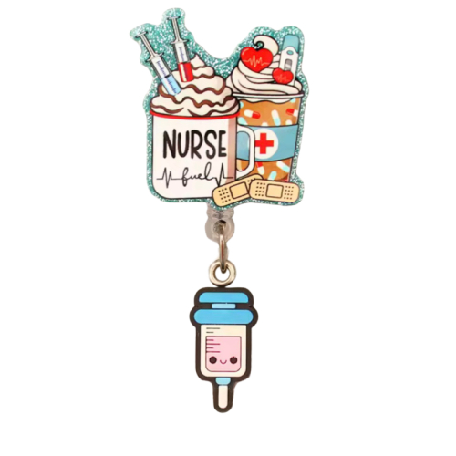 Porta ID con diseño divertido de café y detalles médicos. Ligero, práctico y perfecto para mantenerte con energía durante tu turno.