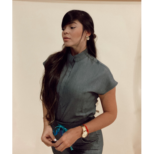 - Mandarin Collar with magnet botton.