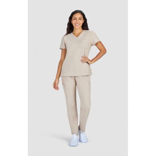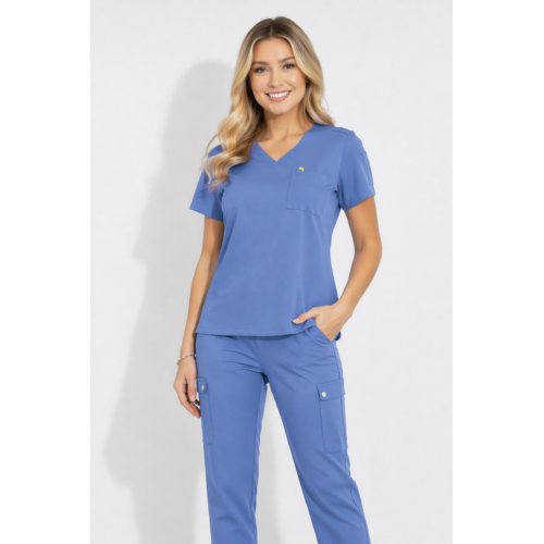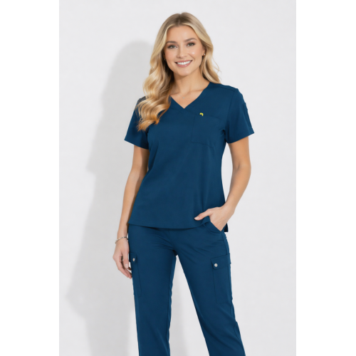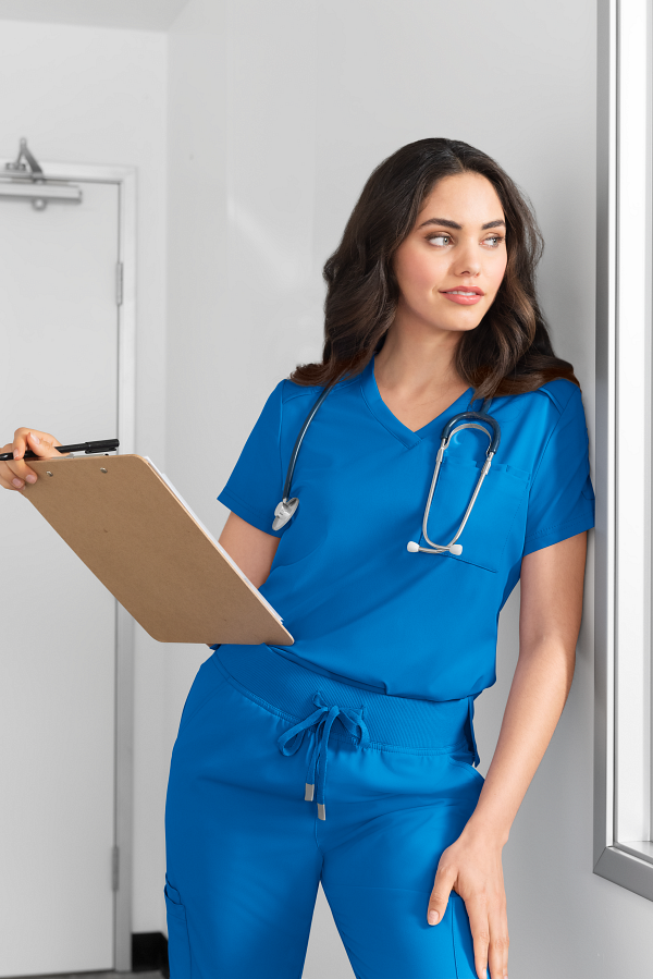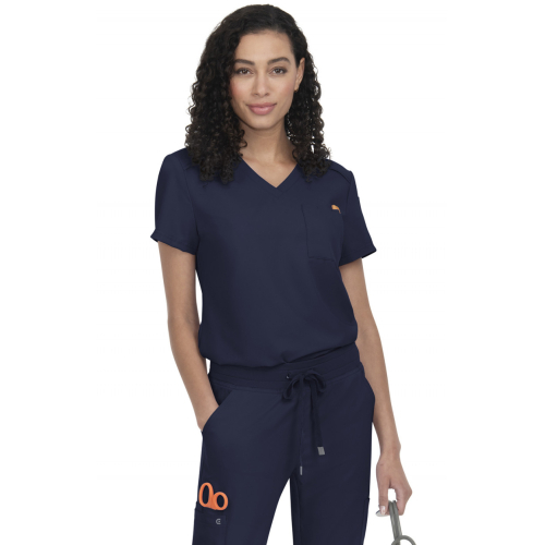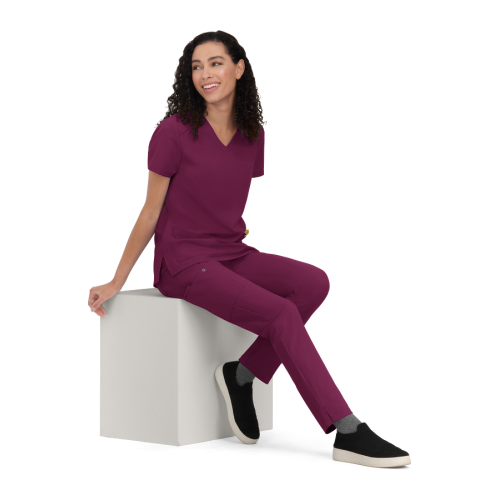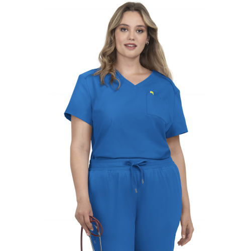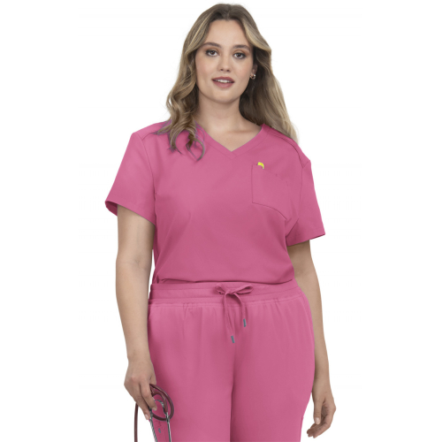 La solución para el scrub común. Una blusa fresca y funcional que luce excelente tanto por dentro como por fuera del pantalón. Cuello clásico en V, bolsillo en el pecho, bolsillo en la manga,3 espacios para bolígrafos, Aberturas laterales para mayor comodidad y movimiento, largo (talla Small): 26 1/2 pulgadas
