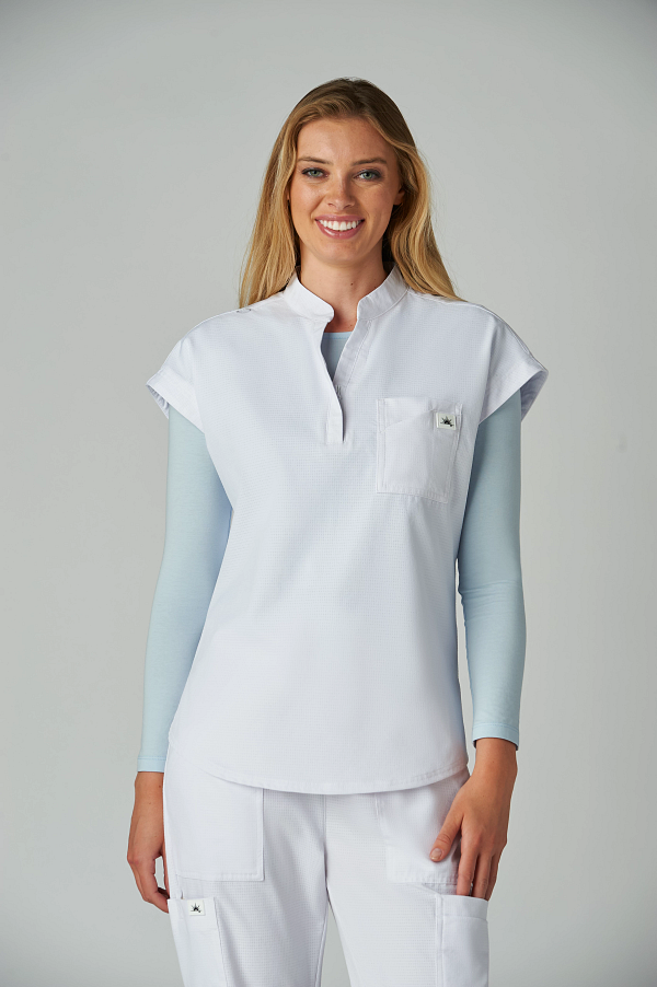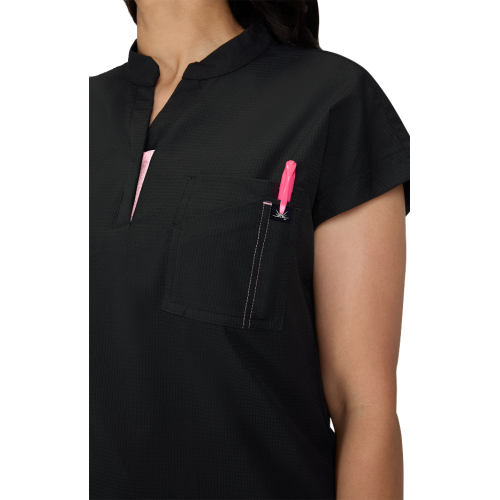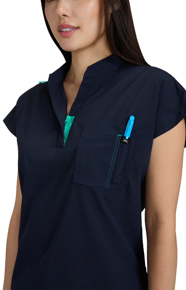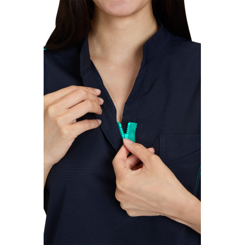 Catrin Top Blusa Scrub Moderna con Cierre – Suavidad y Resistencia. Diseñada para brindar comodidad, estilo y durabilidad, esta blusa scrub cuenta con tela ExoFlex™ ripstop elástica, resistente pero increíblemente suave al tacto. Su cuello con zipper le da un toque moderno, mientras que el bolsillo combinado en el pecho con espacio para bolígrafos mantiene todo lo que necesitas a la mano. Las aberturas laterales permiten mayor movilidad y puedes usarla por dentro o por fuera del pantalón para un look profesional y versátil. Características: Cuello con cierre (zipper) moderno Bolsillo doble en el pecho con espacio para bolígrafo Cordón para ID en contraste Tela ripstop elástica, suave y resistente Tela: 97% poliéster / 3% spandex Largo (talla Small): 25”