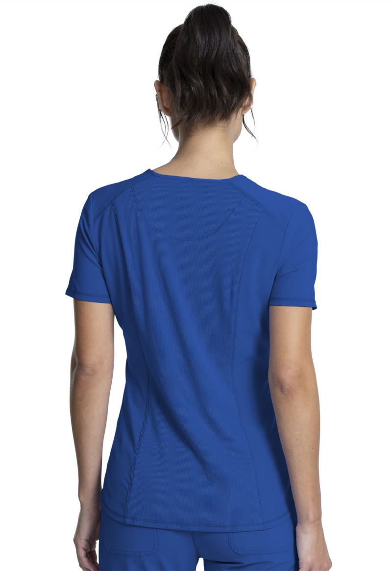 This Contemporary fit v-neck top has rib-knit insets at the neckline.