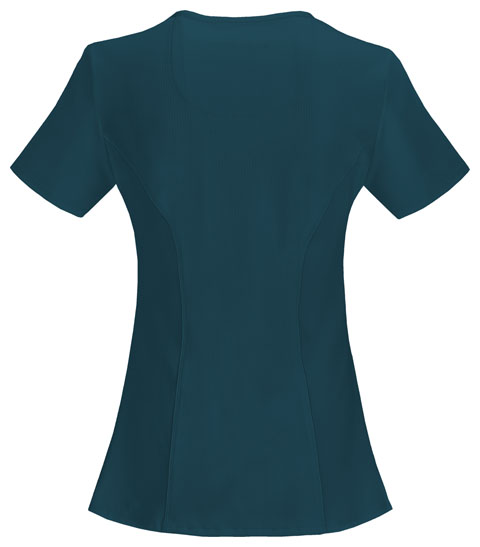 - Stretch rib knit at the center back panel gives this top its slimming shape and allows for extra movement and comfort