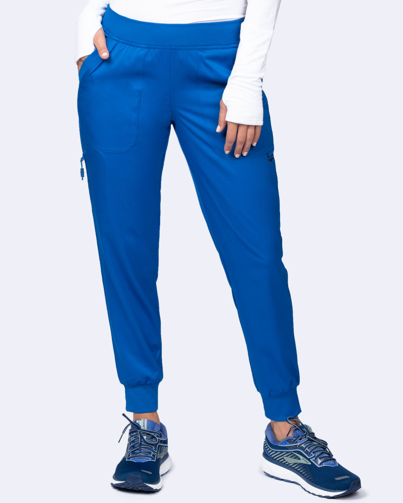 Elastic rib knit waistband with internal drawstring Two on-seam front curved patch pockets with rib knit detail at pocket entry Additional front side zipper pocket with removable logo zipper pull Two back curved patch pockets with “Ava Therese” reflective flasher on right pocket Heart arrow logo embroidery on wearer’s left patch pocket Self tab with utility gunmetal d-ring Tapered jogger pant leg with rib knit cuffs