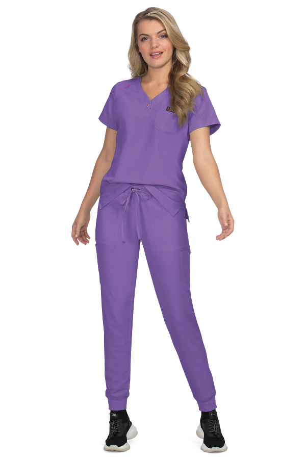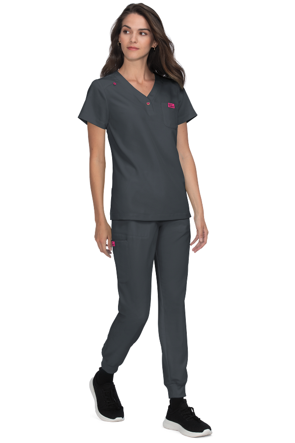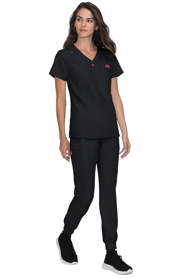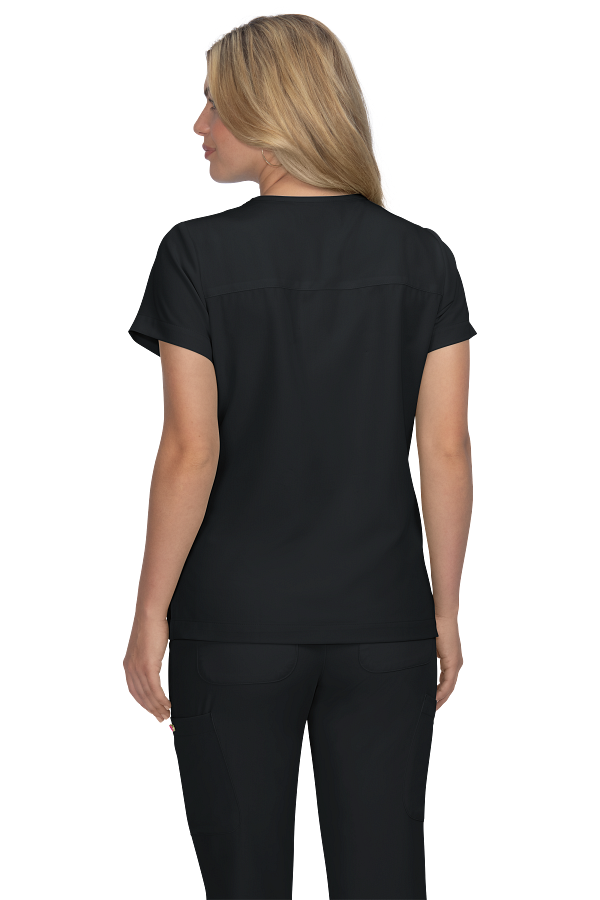 his super cute top features a heart-shaped snap at neck. Modern classic fit.